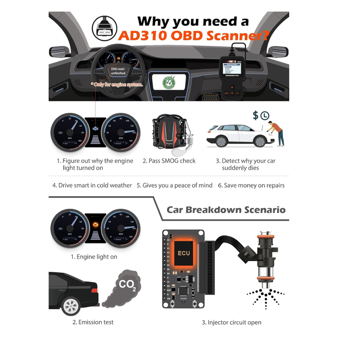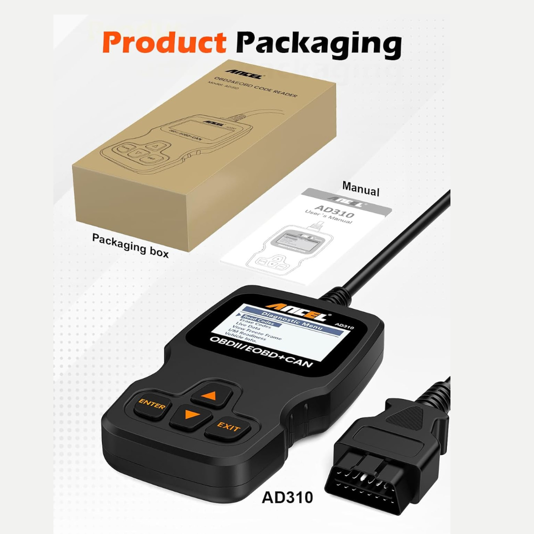The ANCEL AD310 is a reliable, user-friendly OBD II diagnostic scan tool designed for both beginners and professional mechanics. It reads and clears engine fault codes on any 1996 or newer OBD2-compatible vehicle, helping you quickly identify issues, save time, and avoid unnecessary repair costs. With its durable build, fast scanning speed, and easy-to-read display, the AD310 is one of the most trusted entry-level diagnostic tools on the market.